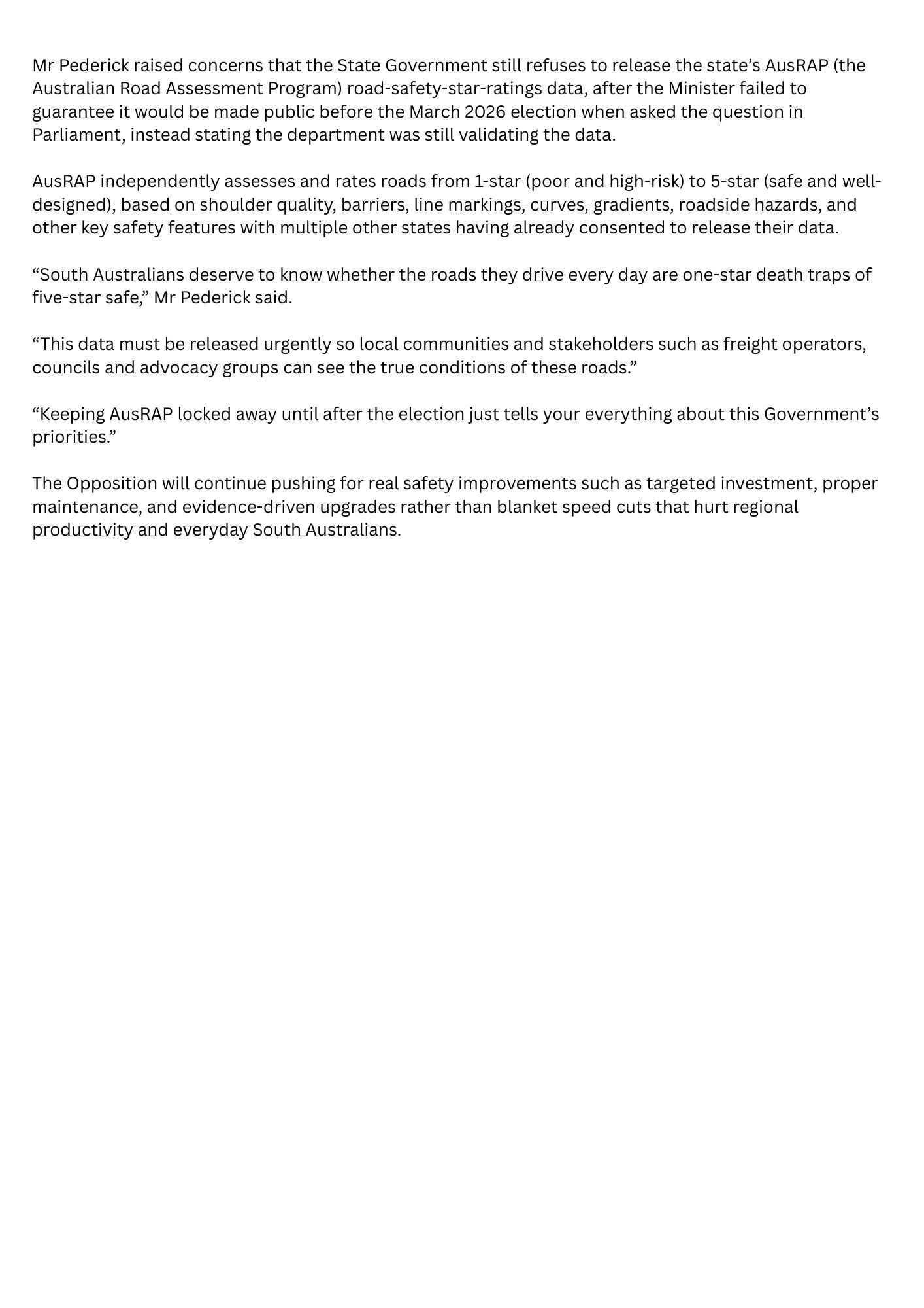 - Media Releases »Labor's Transport Minister fails to stand up for regional South Australians on speed limit review